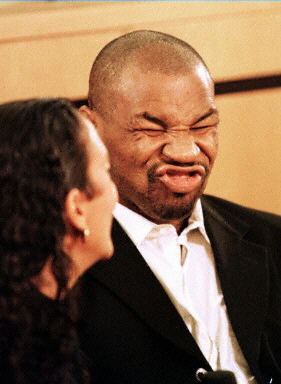 重获拳击执照后,泰森向他妻子做了一个鬼脸