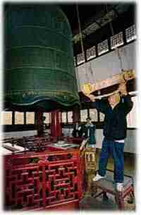 1986年11月21日上午十时许,108下雄浑壮阔、沉郁磅礴的钟声,回荡在杭州群山、碧湖上空,宣告了绝响百年的“南屏晚钟”的新生。“南屏晚钟”是净慈寺的美称,为著名的西湖十景之一。铜钟在连年战乱中悄然消失,钟声沉寂近百年。现在的钟是日本佛教界1984年10月捐资相助,重铸而成的。悬挂在重建的二层三檐钟楼内的巨大铜钟,高3.6米,直径2.3米,重10吨,钟声可持续120秒钟之久。南屏晚钟与雷峰夕照隔路相对,塔影钟声组成了西湖十景中两处最迷人的晚景。净慈寺还伴有济公的神话传说,寺内有“神运井”。南屏山北麓的净慈寺创建于五代后周显德元年(公元954年),距今已有1000多年历史。是吴越国王钱弘叔为供养南山佛教开山祖师永明禅师而建,原名“慧日永明禅院”。地处怪石参嵯,宛若屏障的南屏山间。南宋时改名为“净慈禅寺”,与灵隐寺,昭庆寺,圣因寺并称“西湖四大丛林”。净慈寺初建时就设钟楼一座。明代洪武十一年(公元1378年),嫌旧钟太小,重铸一口重达10吨的巨钟,因钟声洪亮,再加上寺后南屏山多空穴,所以晚钟敲响,钟声更是穿穴回荡,传播山谷,远飘大半个杭城。清康熙南巡时,以天将破晓,“夜气方清,万簌俱寂,钟声乍起,响入云霄,致足发人深省也”之由,改称“南屏晚钟”。