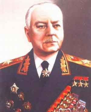 克里门特·叶弗列莫维奇·伏罗希洛夫(1881~1969),前苏联最高苏维埃主席团主席。生于叶卡捷琳诺斯拉夫省巴赫姆特斯克县维尔赫涅耶村。曾在冶金厂学徒。1898年在工厂组织社会民主革命小组。1903年参加俄国社会民主工党。1905~1907年在乌克兰参与领导罢工运动,1908~1917年从事地下工作,多次遭监禁和流放。参加过二月革命和十月革命。十月革命后任彼得格勒市人民委员,与捷尔任斯基共同组建全俄肃反委员会。内战期间任红军第十军司令、察里津前线司令等。1921~1924年曾任北高加索军区司令、莫斯科军区司令。1925~1934年任苏联陆海军人民委员和苏联革命军事委员会主席。1934~1940年任苏联国防人民委员。1935年获苏联元帅称号。1940年后任苏联人民委员会副主席兼国防人民委员会主席。卫国战争时期任国防委员会委员、西北方面军总司令、列宁格勒前线司令、游击队总司令。1945年任盟国对匈管制委员会主席。1946年3月任苏联部长会议副主席。1953年3月至1960年5月任苏联最高苏维埃主席团主席。为联共(布)中央政治局委员(1926~1952年)、苏共中央主席团委员(1952~1960年)。1961年10月在苏共22大上,因“支持反党集团活动”未选入中央委员会。1966年4月在苏共23大上重新当选中央委员。1957年4~5月访华。1969年12月2日病逝。主要著作有:《苏联国防》、《捍卫社会主义的红军》等。