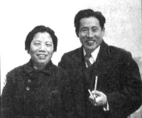 邓颖超与刚出狱的廖承志,廖承志拿着狱中用的竹烟斗