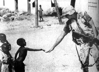 图:美国士兵和索马里孩子友好相处
