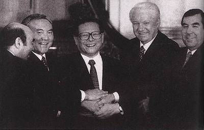 1996年4月26日,中国、俄罗斯、哈萨克斯坦、吉尔吉斯斯坦和塔吉克斯坦五国元首在上海正式签署在边境地区加强军事领域信任的协定。