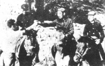 周恩来(中)与聂荣臻(左)在西征前线迎接斯诺