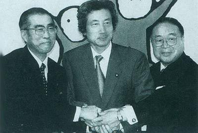 小渊惠三(左)、小泉纯一郎(中)和尾山静六(右)在一起