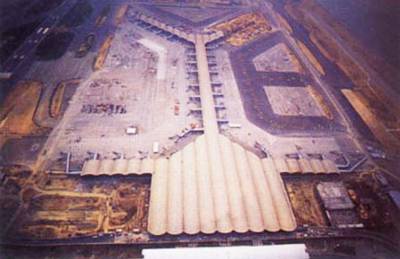耗资1550亿港币的香港国际机场总面积达1248公顷,在弹丸之地的香港是个奇迹;单是客运大楼就占51万平方米,相当于86个足球场,是世界最大的建筑物之一。主楼的设计者霍士达爵士(Norman Forster,也是香港汇丰银行总厦的设计者)说,他的灵感来自香港人的精神。