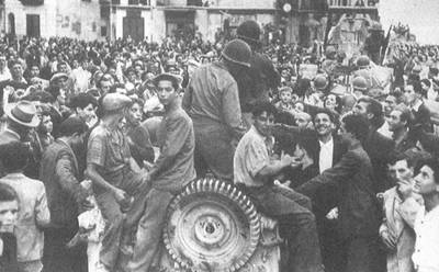 1943年9月盟军在意大利萨勒诺登陆后,快速向前 推进,意大利群众纷纷走出家门,欢迎盟军的到来