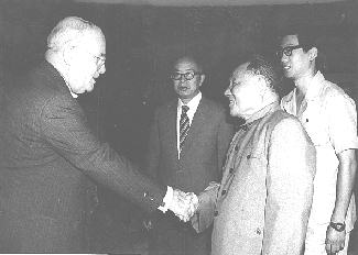 邓小平同志接见吉布尼(左)为首的美方代表团