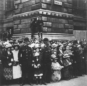 伫立在唐宁街边的群众等待着事态的发展