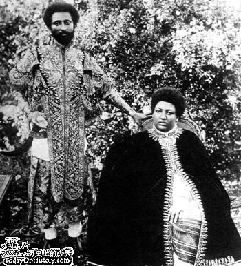 1930年1月11日,海尔-塞拉西(1892-1975)成为埃塞俄比亚新皇帝。6年后,他和他英勇不屈的人民将与墨索里尼有一场艰苦卓绝的搏斗。图为身穿华丽皇袍的海尔-塞拉西与他的妻子梅嫩皇后新婚后的合影。