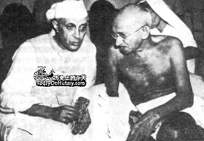 尼赫鲁与甘地在一起