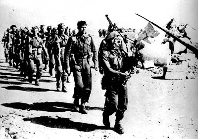 英军向的黎波里附近的德军发起进攻英军中的苏格兰军团向的黎波里进发