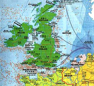 每处红点表示被德国潜艇击沉的英国舰船。