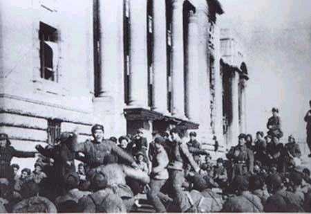 1951年1月14日,中朝部队解放汉城,在南朝鲜“国会大厦”前欢喜胜利