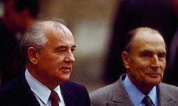 1987年12月12日密特朗出席英吉利海峡隧道签字仪式密特朗和前苏联领导人戈尔巴乔夫在一起参加密特朗葬礼的法国儿童