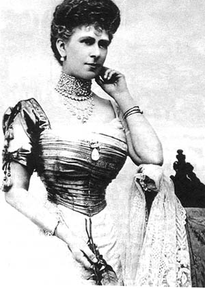 1905年1月,世界上最大的钻石柯利南大钻石在南非德兰士瓦被发现。上图是英国的玛丽王妃,即嫁给日后的乔治五世玛丽王后,佩戴着柯利南钻石上切割下来的大颗钻石。柯利南大钻石是在1907年献给爱德华七世的,后被切割成几大块,其中最大一颗现在镶嵌在王室的宝杖上。
