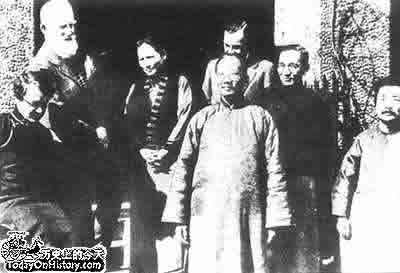 右起:鲁迅、林语堂、伊罗生、蔡元培、宋庆龄、肖伯纳、史沫特莱