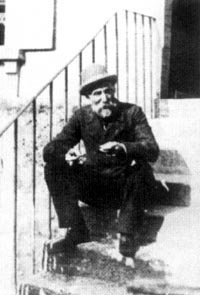 1897年的雷诺阿常常坐在门前的楼梯上沉思1841年2月25日,雷诺阿在法国里摩日出生。1861年,雷诺阿开始到巴黎著名的格莱尔画室学画。参加了1874、1876、1877年举办的三届印象派画展。1881年,他的画风转向新古典主义。1888年又恢复印象派画法。擅长人物画、肖像画,醉心于描绘盛装裸体女性,偏爱粉红与深蓝色调。代表作有《包厢》、《红磨坊街的舞会》、《伊雷娜小姐像》、《浴女》等。1919年12月,雷诺阿病逝。