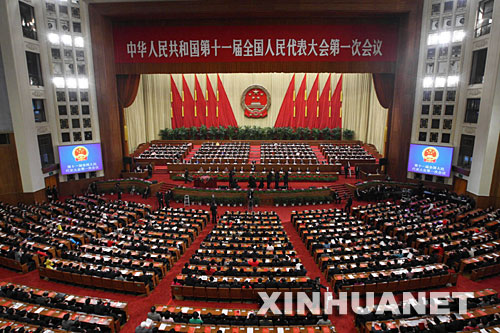 3月18日,第十一届全国人民代表大会第一次会议在北京人民大会堂举行闭幕会。