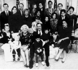 1945年1月6日,布什在与芭芭拉举行的婚礼晚会上,陶醉于幸福之中。