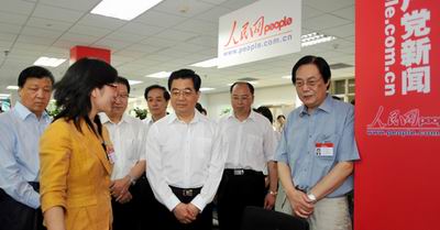 胡锦涛总书记来到人民日报社主办的人民网,看望网站工作人员。