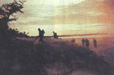 美国人在进入渺无人迹的丛林前穿过一个滩头阵地