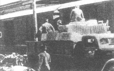 日本浪人在监督运抵天津东站候装汽车的走私货物