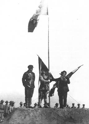 联军总司令冯玉祥(左一)和总政治部副部长刘伯坚(左三)在誓师大会上