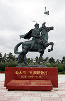 完颜阿骨打(1068—1123)即金太祖。金王朝的创立者。女真族完颜部首领。12世纪初统一各部,并多次打败辽国。辽天庆五年(1115)称帝,建国号金。曾命人创制女真文字。