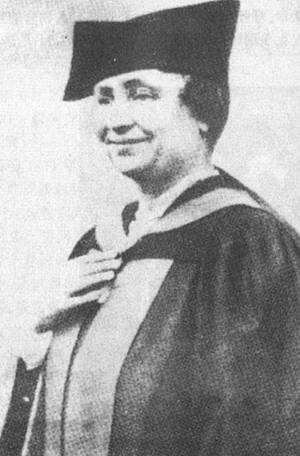 海伦-凯勒获英国格拉斯哥大学荣誉博士学位后留影