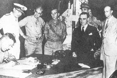1943年9月3日,意方代表在西西里岛希腊库扎附近的盟军司令部签署停战协议